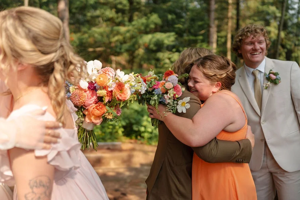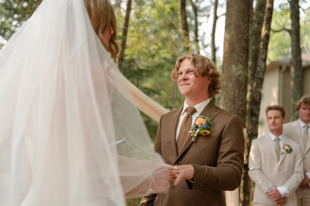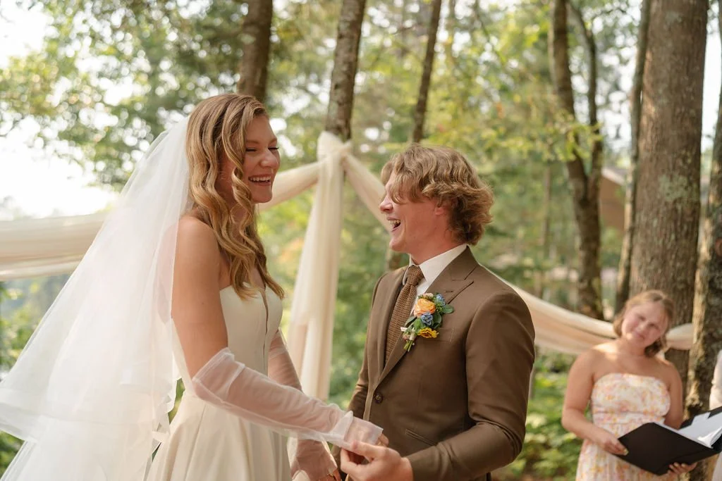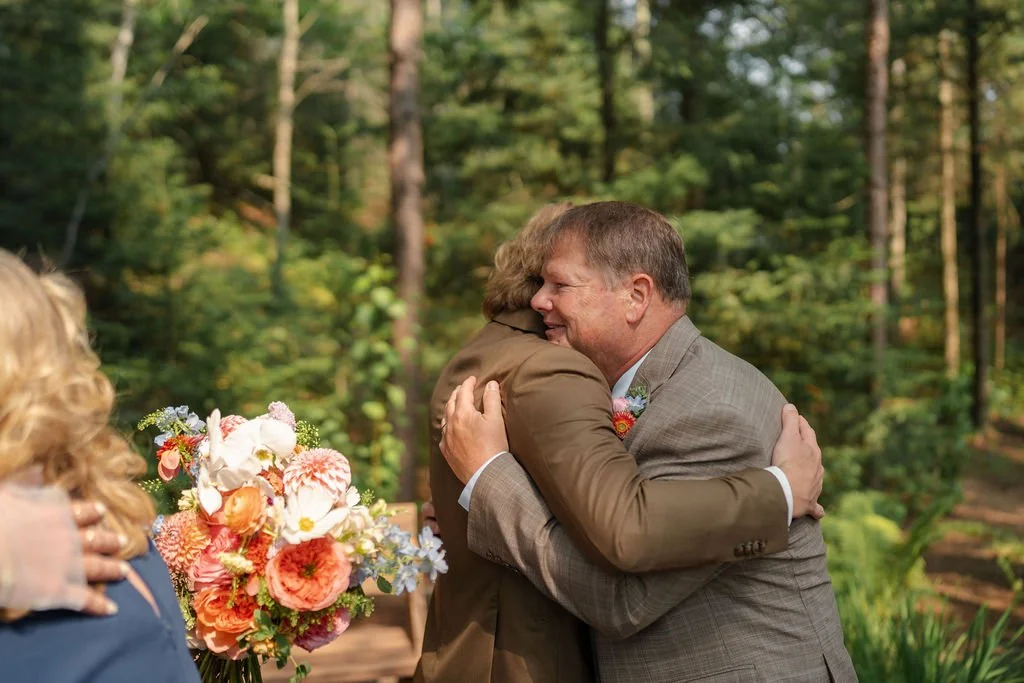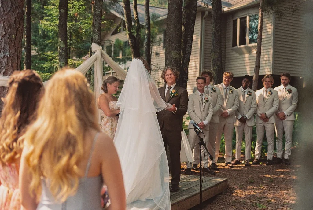 They were married in early August in northern Wisconsin, on a piece of family property tucked beside the water. It isn’t a place layered with generations of history, but it is deeply personal and meaningful to them. The kind of place where the wind moves slowly across the lake and the trees feel tall and protective. It wasn’t just a backdrop. It was a setting that allowed them to breathe. Open sky, warm air, the hum of late summer all around. It felt expansive and intimate at the same time.