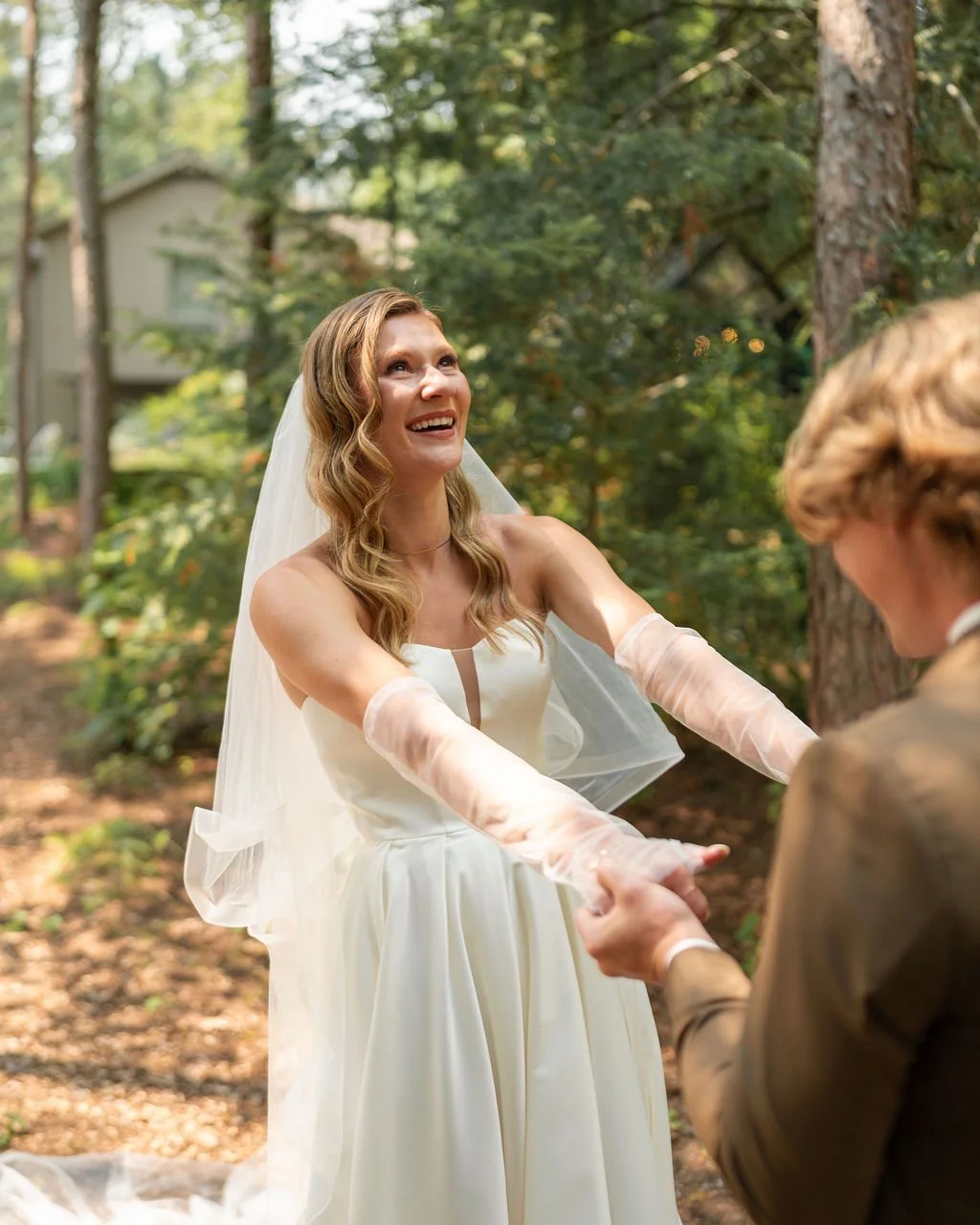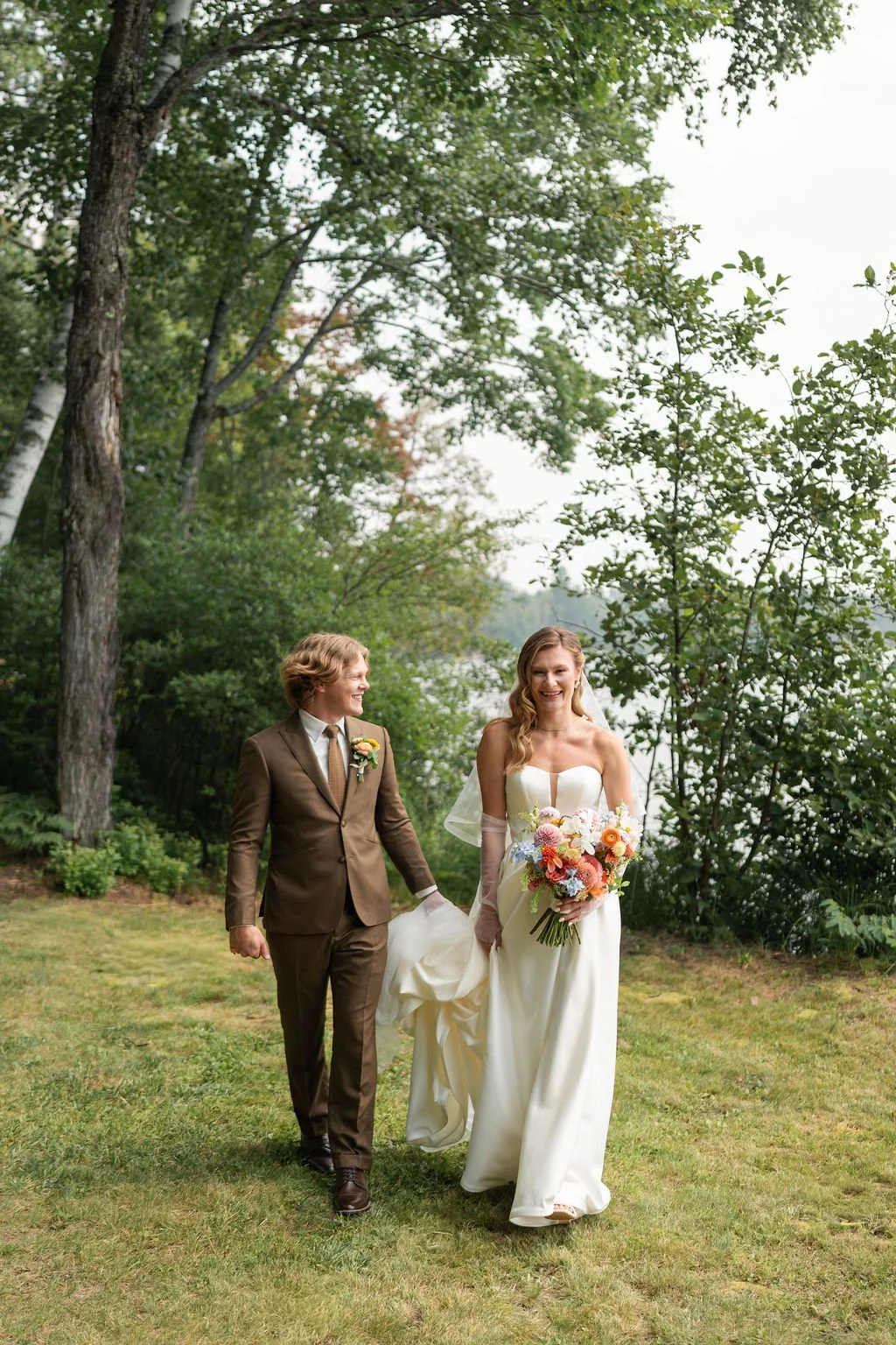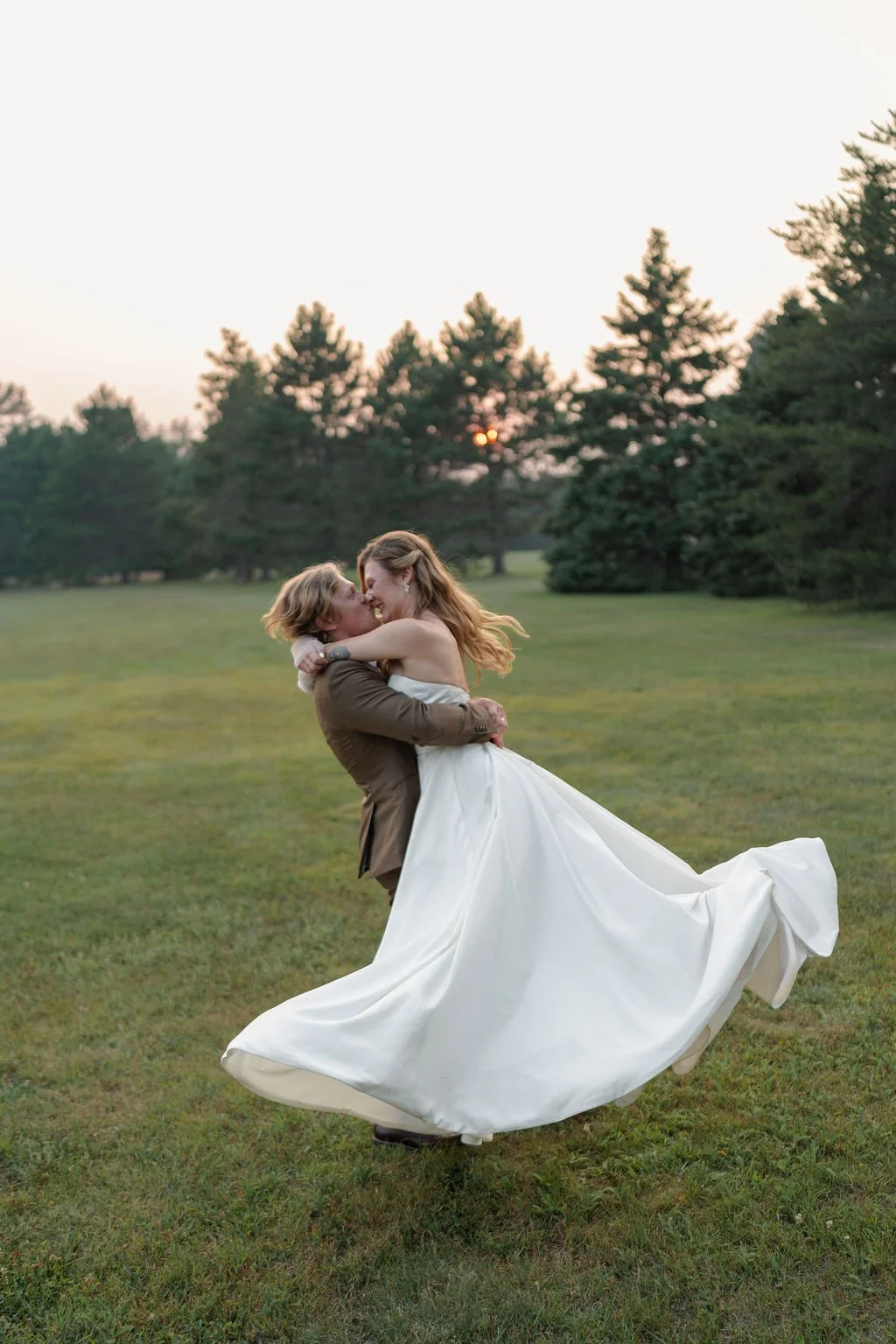 They were married in early August in northern Wisconsin, on a piece of family property tucked beside the water. It isn’t a place layered with generations of history, but it is deeply personal and meaningful to them. The kind of place where the wind moves slowly across the lake and the trees feel tall and protective. It wasn’t just a backdrop. It was a setting that allowed them to breathe. Open sky, warm air, the hum of late summer all around. It felt expansive and intimate at the same time.