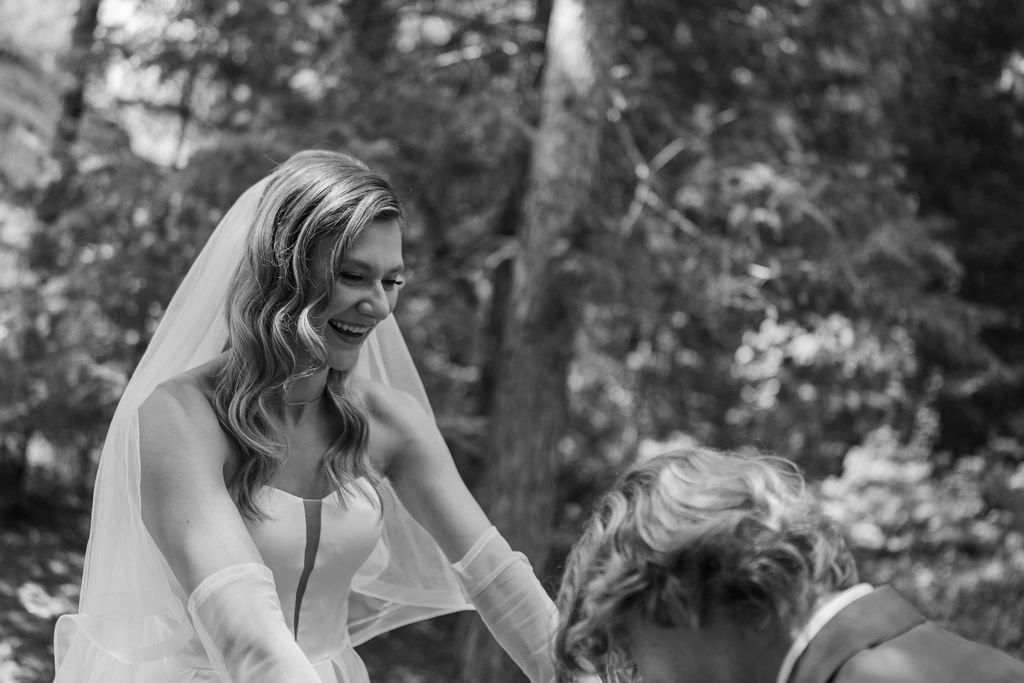 There’s something about choosing a place that already feels like home. Tucked away into the trees above the lake, the light filtered through the trees in that soft Midwestern way, golden but never harsh. Nature didn’t compete for attention. It wrapped around the day, steady and grounding. You could feel how important it was to them to stand there, in a place that felt honest and unmanufactured, and say yes to forever.